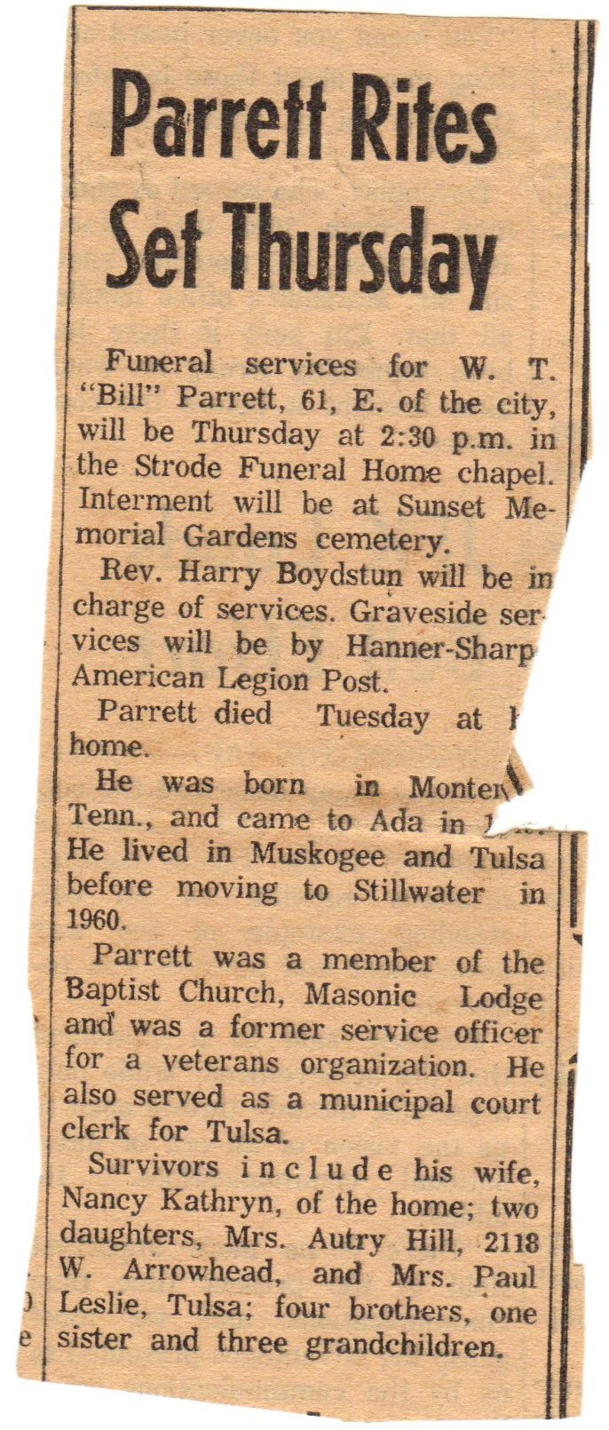 Parrett, Bill - Obit in Newpre