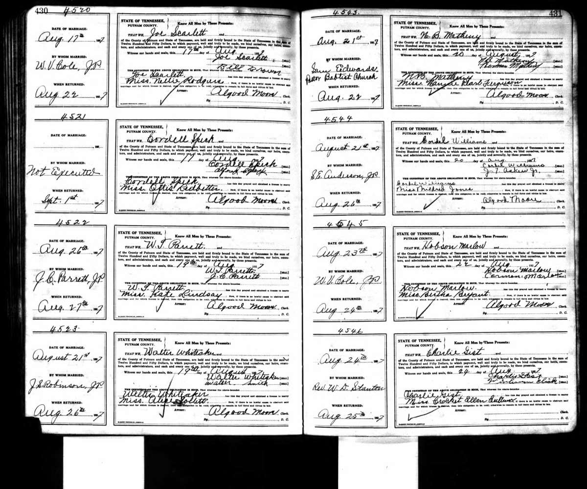 Parrett-Lindsey marriage