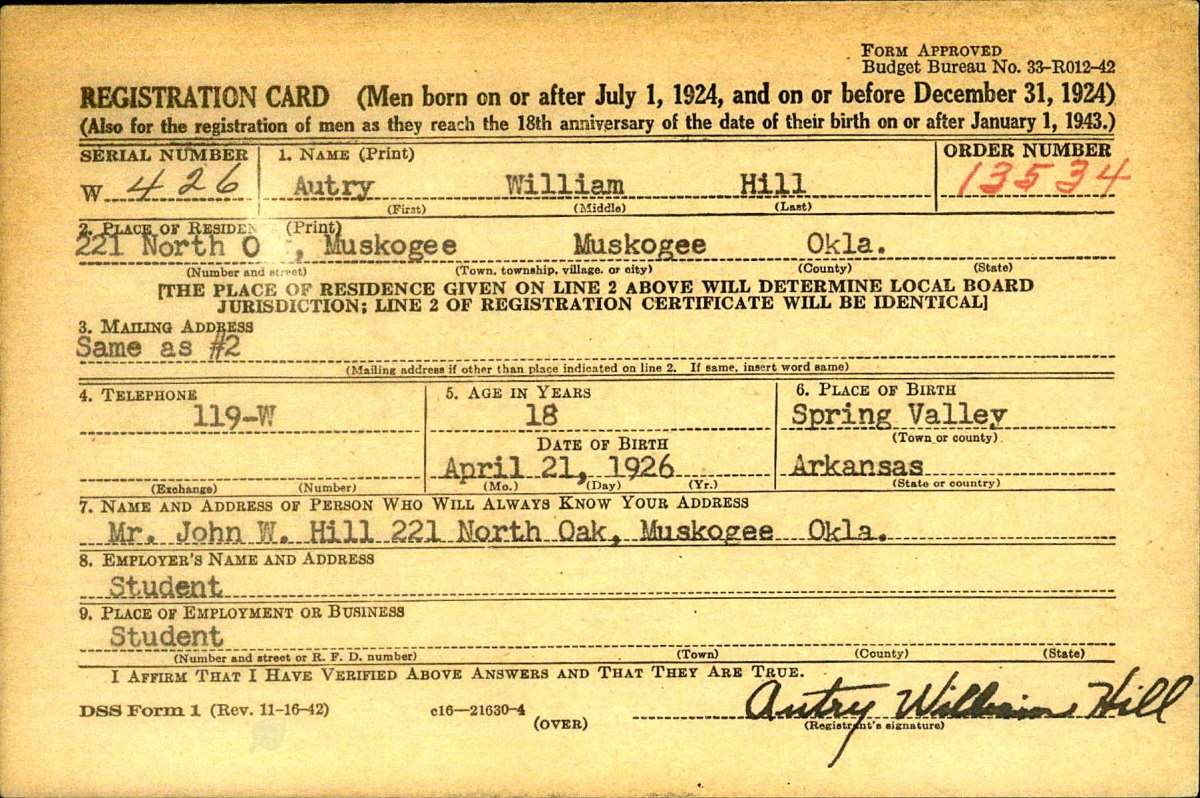 Hill, Autry - draft card