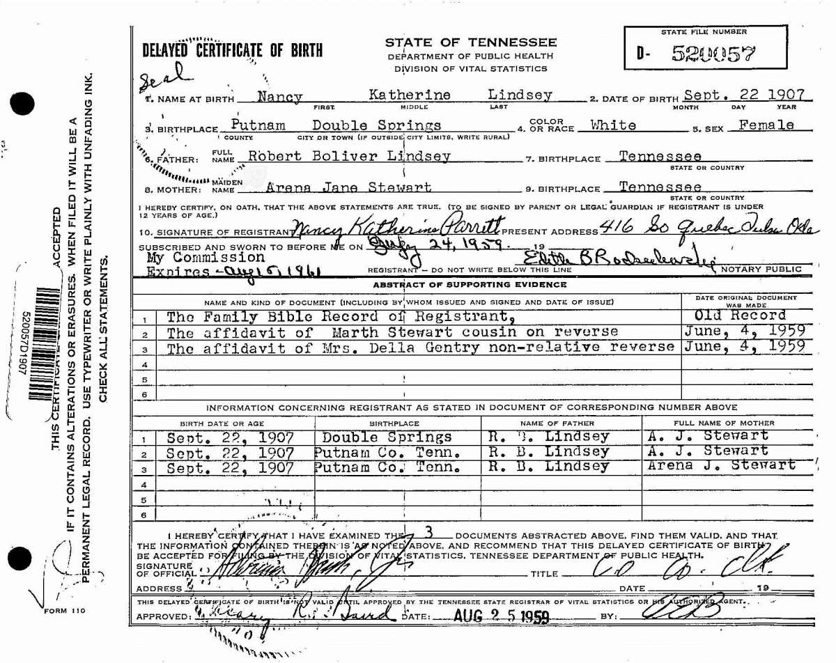 Nancy Kathryn Lindsey (Birth C