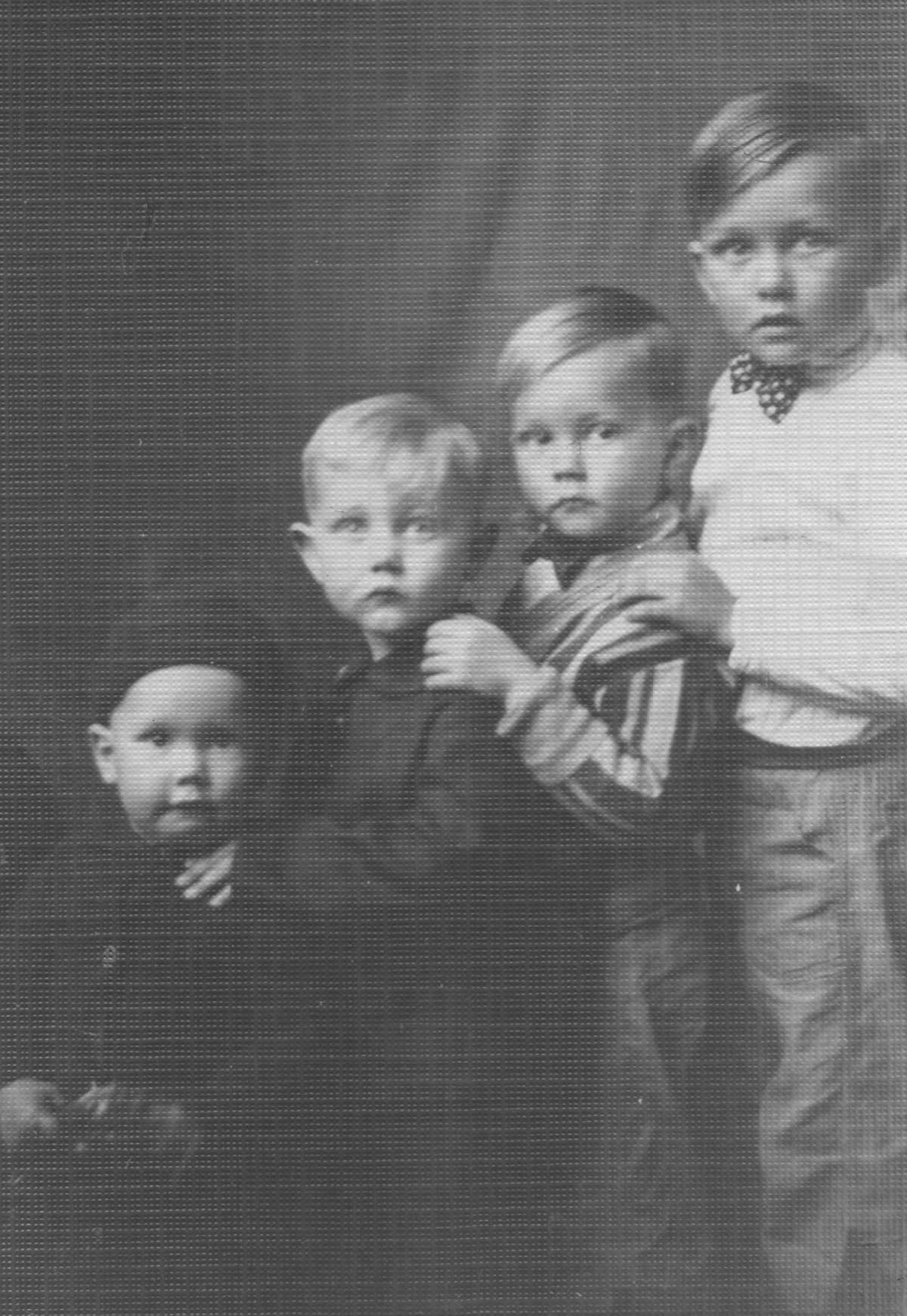 From oldest to youngest - Autry Hill, Doyle Hill, cousin Edward McDaniel, Harlan Hill (who died in 1932) - this was probably 1931