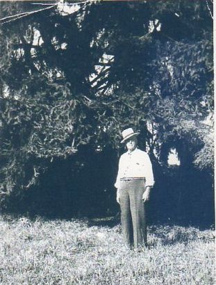 Recollections of boyhood days - Joe Henry in June of 1950. This tree stands at the end of the garden at the old Henry home place.