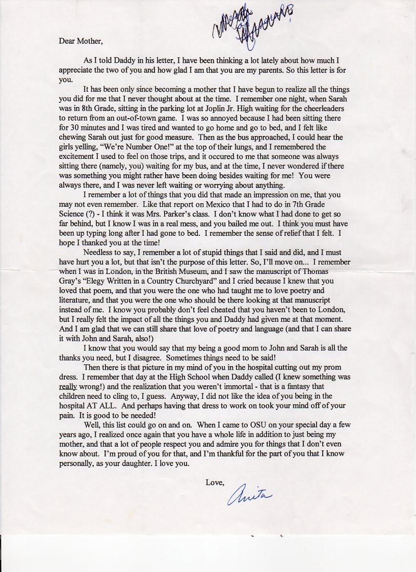 Anita read this letter to her mother at her Mother's funeral in March of 2021. She had written the letter many years earlier, probably in the early 2000's.